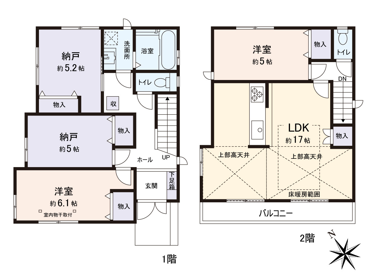 LDK19.7帖、南向きの吹き抜けの解放感があるお家